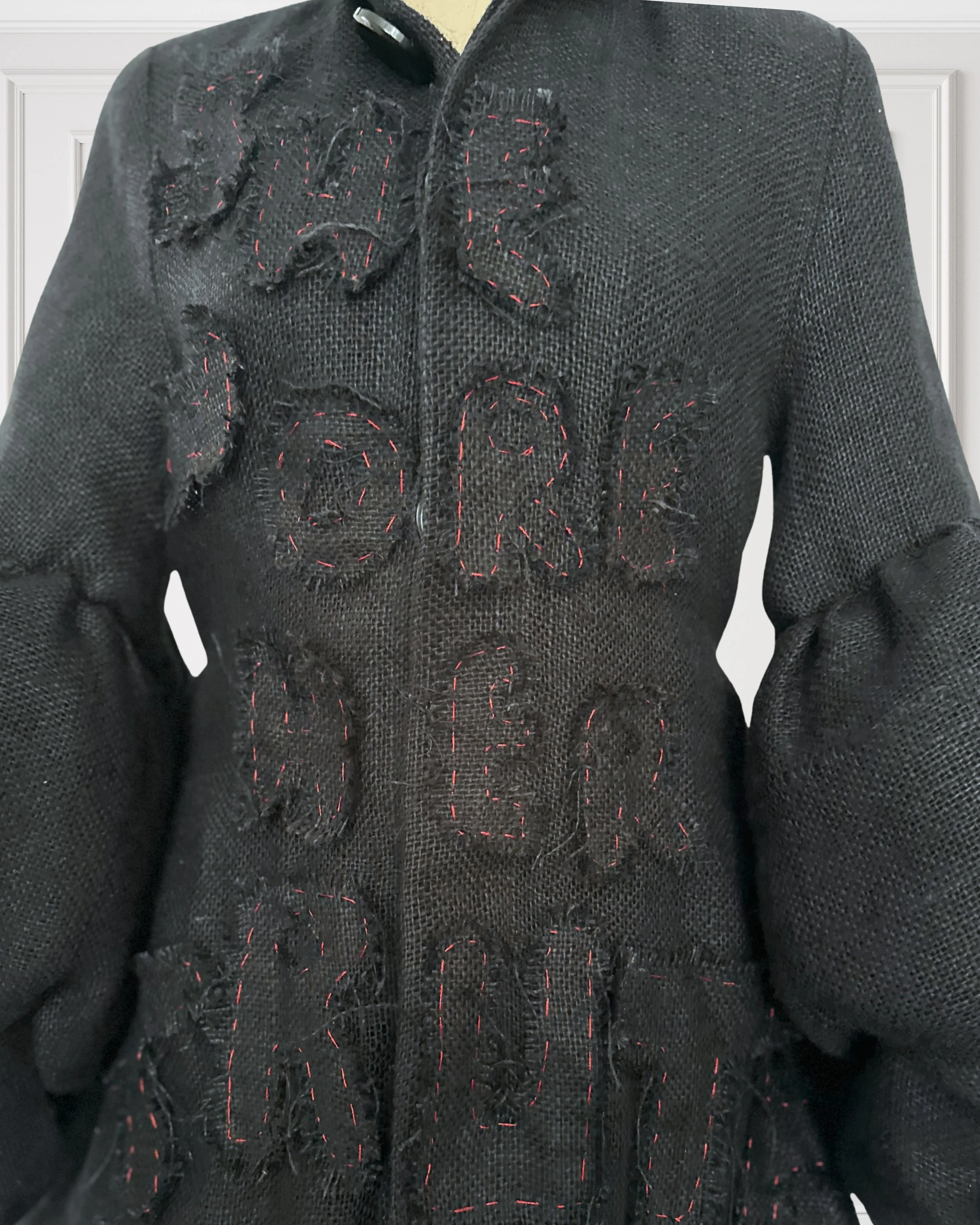 Each piece is crafted once from natural deadstock fabrics, chosen for both sustainability and a more approachable way to experience couture.